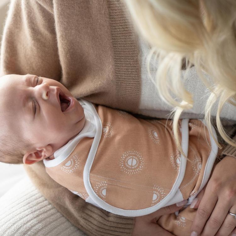 • Swaddle for sounder + safer sleep