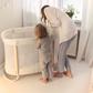 2-in-1 baby crib that effortlessly transitions from a bassinet to a crib, is easy to set up and fits seamlessly into any room. Our crib boasts an intuitive zip and click design, allowing you to set it up in no time, without the need for any tools. When you are ready to adjust it to the lower position, the crib transforms easily with zippers. Its sleek and lightweight Scandinavian design not only adds a touch of elegance to any room but also ensures easy mobility throughout your home. Whether you have a spacious nursery or a smaller bedroom, our crib fits seamlessly into any space.