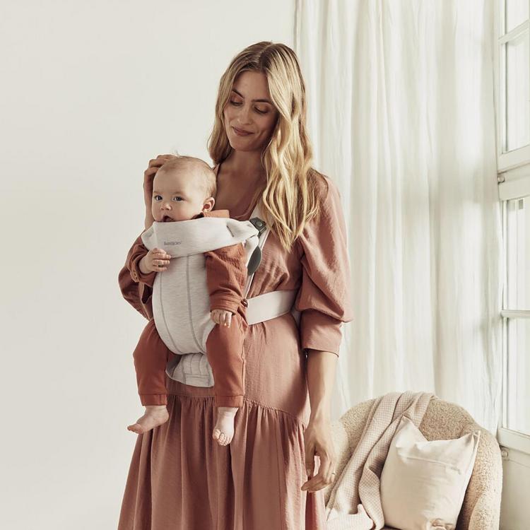 Flexible fabric of the baby carrier allows you to see and feel your newborn’s position and the natural C-curve of their back