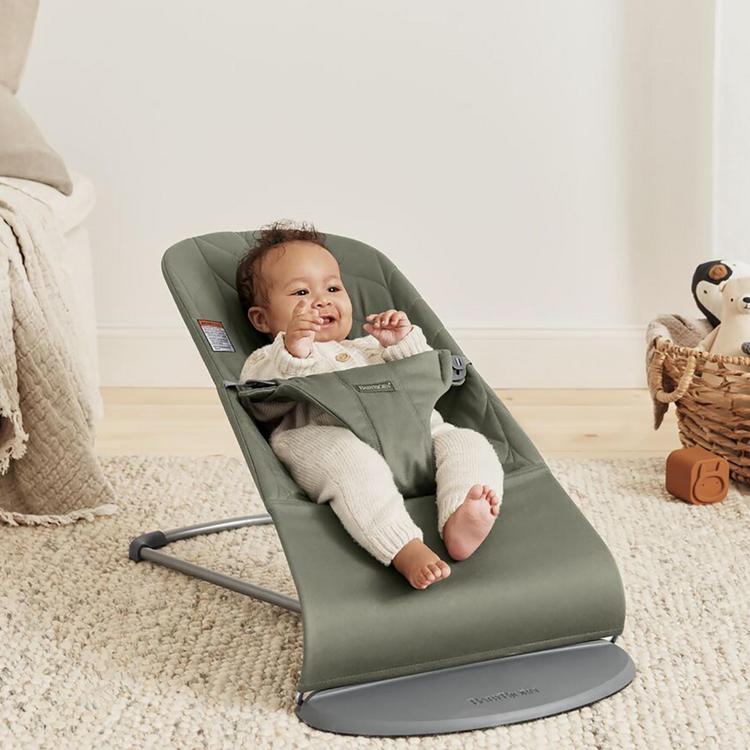 BabyBjorn Bouncer Bliss is our classic, award-winning baby bouncer in a new design. Bouncer Bliss is available in a plush cotton quilting and soft, child-friendly mesh - two extra cozy fabrics for a soft start to life. It s gives your baby a cozy place to rest and play. The ergonomically shaped seat provides proper support to your baby's back, neck and head. The gentle, natural bouncing motion is controlled by your or your baby's movements. No batteries or cords are needed, and the baby bouncer makes no noise. Bouncer Bliss is lightweight and portable, allowing you to safely keep your little one close when you need to shower, make dinner or simply need to use both of your hands. Bouncer Bliss has three different positions and folds completely flat when you're on the go. The fabric is easy to remove and machine washable. Suitable for children aged 0-2 years.