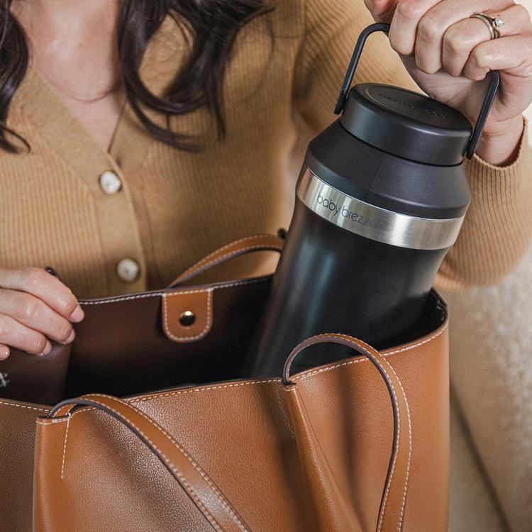 Baby Brezza's NEW All-Day Breastmilk Cooler keeps your "liquid gold" at a safe, cold temperature for up to 24 hours - no longer worry that your breastmilk won't stay cold between pumping and refrigerating or freezing! This revolutionary new breastmilk cooling system holds up to 20 oz of breastmilk - meaning it can accommodate milk from up to 4 pumping sessions on average! The double-insulated stainless steel thermos holds two 360° ice packs that fully surround two 10 oz reusable milk storage bottles, ensuring breastmilk remains cold until you can refrigerate or freeze it and preserving its freshness and nutrients at home or on-the-go. It's easy to use - first, freeze the ice packs, then slide the frozen ice packs inside the stainless steel thermos. Simply add the milk storage bottles to keep milk safely chilled for an entire day! (Based on lab testing measuring the time that the coolers maintain breastmilk temperature at refrigerated levels). The internal milk storage bottles are dishwasher-safe and can also be safely used in the Bottle Washer Pro or any Baby Brezza Sterilizer Dryer. Features a built-in carry handle and twist-on/off lid for convenience and portability on the go, while traveling, or just at home between pumping sessions and a trip to the kitchen! You can also feed your baby with the milk storage bottles if you are using Avent Classic nipples, minimizing waste and mess during transfer. This portable breast milk chiller is FSA/HSA eligible and PVC/Lead/Phthalate/Cadmium-FREE. 1 year limited warranty (not valid if shipped outside the US).