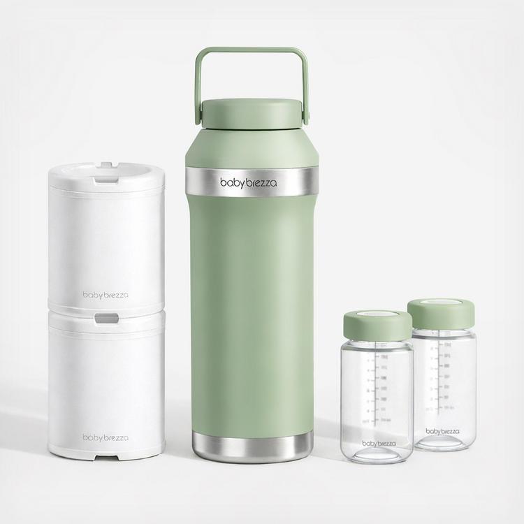 Baby Brezza's NEW All-Day Breastmilk Cooler keeps your "liquid gold" at a safe, cold temperature for up to 24 hours - no longer worry that your breastmilk won't stay cold between pumping and refrigerating or freezing! This revolutionary new breastmilk cooling system holds up to 20 oz of breastmilk - meaning it can accommodate milk from up to 4 pumping sessions on average! The double-insulated stainless steel thermos holds two 360° ice packs that fully surround two 10 oz reusable milk storage bottles, ensuring breastmilk remains cold until you can refrigerate or freeze it and preserving its freshness and nutrients at home or on-the-go. It's easy to use - first, freeze the ice packs, then slide the frozen ice packs inside the stainless steel thermos. Simply add the milk storage bottles to keep milk safely chilled for an entire day! (Based on lab testing measuring the time that the coolers maintain breastmilk temperature at refrigerated levels). The internal milk storage bottles are dishwasher-safe and can also be safely used in the Bottle Washer Pro or any Baby Brezza Sterilizer Dryer. Features a built-in carry handle and twist-on/off lid for convenience and portability on the go, while traveling, or just at home between pumping sessions and a trip to the kitchen! You can also feed your baby with the milk storage bottles if you are using Avent Classic nipples, minimizing waste and mess during transfer. This portable breast milk chiller is FSA/HSA eligible and PVC/Lead/Phthalate/Cadmium-FREE. 1 year limited warranty (not valid if shipped outside the US).
