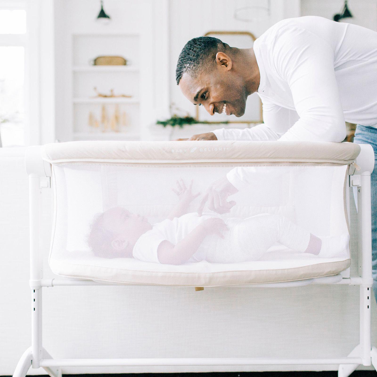When they sleep better, you’ll sleep better. The Baby Delight Beside Me™ Wink Organic Bassinet and Bedside Sleeper was created to give you multiple sleeping options. You can choose to use the Wink in bassinet mode with all walls in a secured upright position and easily move it from room to room. You can also choose to use the Wink in bedside sleeper mode by securing it to your own bed with the included safety anchors. After securing it, simply unzip the side wall closest to your bed giving you access to your little one all throughout the night. Whether you need to feed, console, or just peek in at your baby, it’s never been easier! The Beside Me™ Wink is fully surrounded by mesh walls that allow for ample airflow and breathability. It also offers 7 options for height adjustment so it will accommodate most beds.