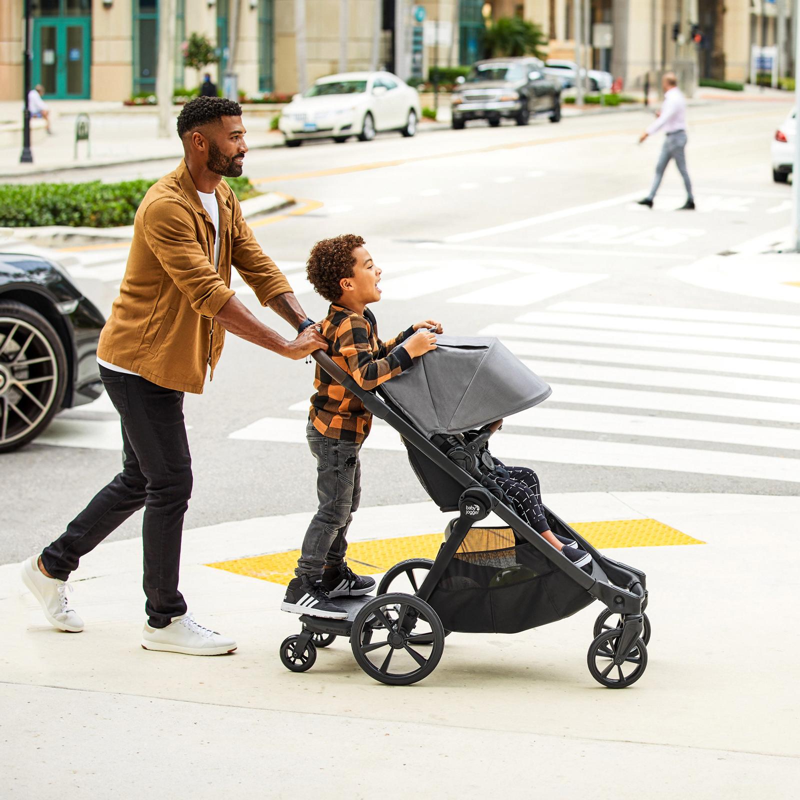 The Baby Jogger® City Select® 2 Stroller, Eco Collection is a versatile dream for parents who know having only one option is not an option. With 24 configurations, this stroller converts from a single stroller to a double or even a triple with a second seat, infant car seat, or glider board (sold separately). Baby stays comfortable with a padded seat and canopy featuring soft, breathable TENCEL™ fabric that helps with thermal regulation and is sustainably sourced. You will love the stylish premium leatherette accents on the handle and included belly bar. It compactly folds 20% smaller than the market-leading single-to-double stroller, as compared to the 2020 UPPAbaby Vista V2 stroller in the US. Plus, its lightweight design, adjustable telescoping handlebar, and ample storage will provide you with even more convenience for your everyday travels. Customize your City Select® 2 with the following accessories (sold separately) to create the all-in-one stroller that keeps your family going, even as it grows pram, parent console, child tray, weather shield, bug canopy, foot muff, and carry bag.