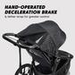 The Summit X3 Jogging Stroller outmaneuvers other jogging strollers on any terrain. And like you, this stroller/jogger hybrid is made to tackle more. Premium, air-filled tires, all-wheel suspension, and a unique, hand-operated deceleration brake provide increased control and added safety as you hit the pavement, making you unstoppable. Its striking all-black design raises the bar on style and features a reflective accent for better visability in the streets. This jogging stroller's front swivel wheel easily locks for jogging or running. The Summit X3 sports a padded near-flat reclining seat and a vented seat top to increase airflow when reclined. A large, adjustable sun canopy with mesh windows, plenty of storage, a one-hand compact fold, and a rear parking brake complete the Summit X3 Jogging Stroller. Customize your running stroller with the following available accessories (sold separately): Baby car seat adapters, pram, and weather shield. The Summit X3 Jogging Stroller is designed to keep up with you and your hustle.