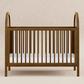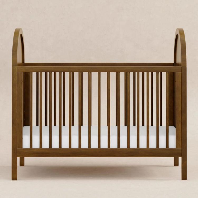 The Bondi 3-in-1 Convertible Crib celebrates boho-inspired design and natural materials with its warm wood tone, playfully arched side panels, and curved feet. The Bondi is designed to grow with your babe using an included toddler bed conversion rail and is screened for harmful chemical emissions to ensure it meets greenguard gold certification.