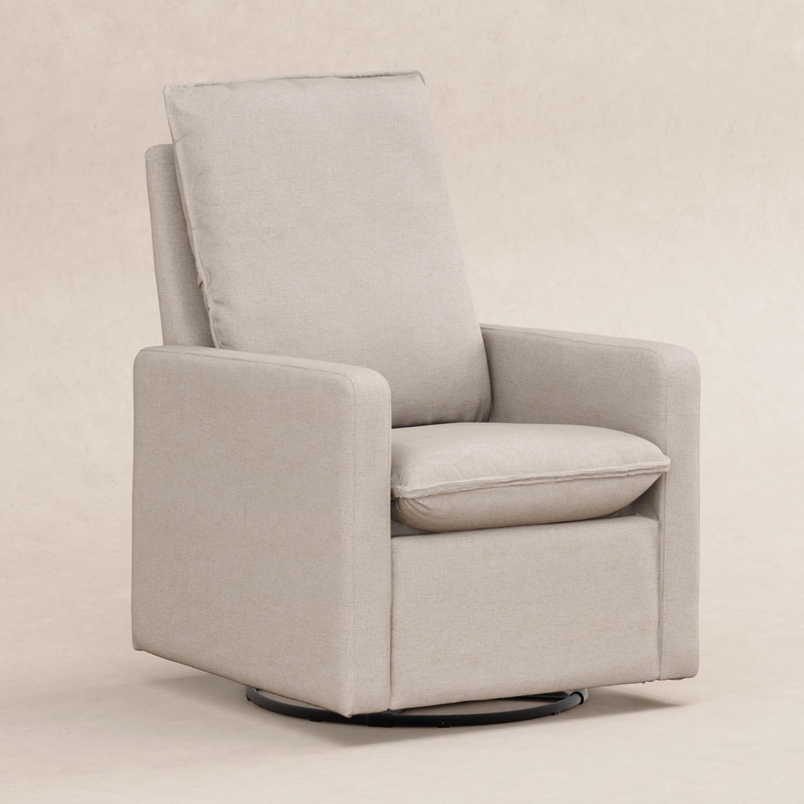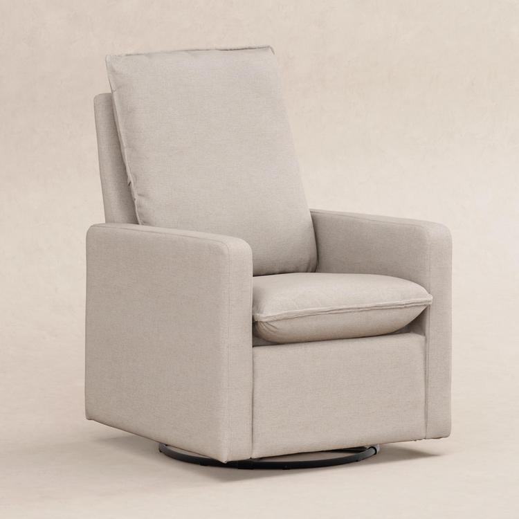 The Cali Pillowback Swivel Glider has been designed for mamas and papas with a high plush pillowback for head and neck support. The smooth gliding, 360-degree swivel base allows you to gently lull your babe to sleep. It's a stylish but also more sustainable choice for the modern nursery. Upholstered by hand in our eco-performance fabric, that is stain resistant, water repellent, and made with at least 30% recycled materials.