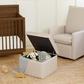 The Cali Storage Ottoman is the perfect blend of style and function. This versatile piece has ample storage for all your baby's extra toys, blankets and more. The easy to lift lid is supported by a soft open and close mechanism to help prevent little fingers getting caught. This trendy ottoman can be paired with the Cali Swivel Glider to create a statement piece in your nursery or home.