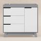The Hudson 3-drawer Changer Dresser is a modern space-saving convenience! Combining an included changing table, 3-drawer dresser, and storage cabinet all in one versatile package. Truly built for baby, the storage cabinet includes an adjustable shelf which is perfect for keeping diapers and wipes handy. Additional details include smooth-glide drawers, hidden hardware, and an included anti-tip kit. Complement the best-selling Hudson 3-in-1 Convertible Crib for an essential modern nursery.