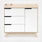 The Hudson 3-drawer Changer Dresser is a modern space-saving convenience! Combining an included changing table, 3-drawer dresser, and storage cabinet all in one versatile package. Truly built for baby, the storage cabinet includes an adjustable shelf which is perfect for keeping diapers and wipes handy. Additional details include smooth-glide drawers, hidden hardware, and an included anti-tip kit. Complement the best-selling Hudson 3-in-1 Convertible Crib for an essential modern nursery.