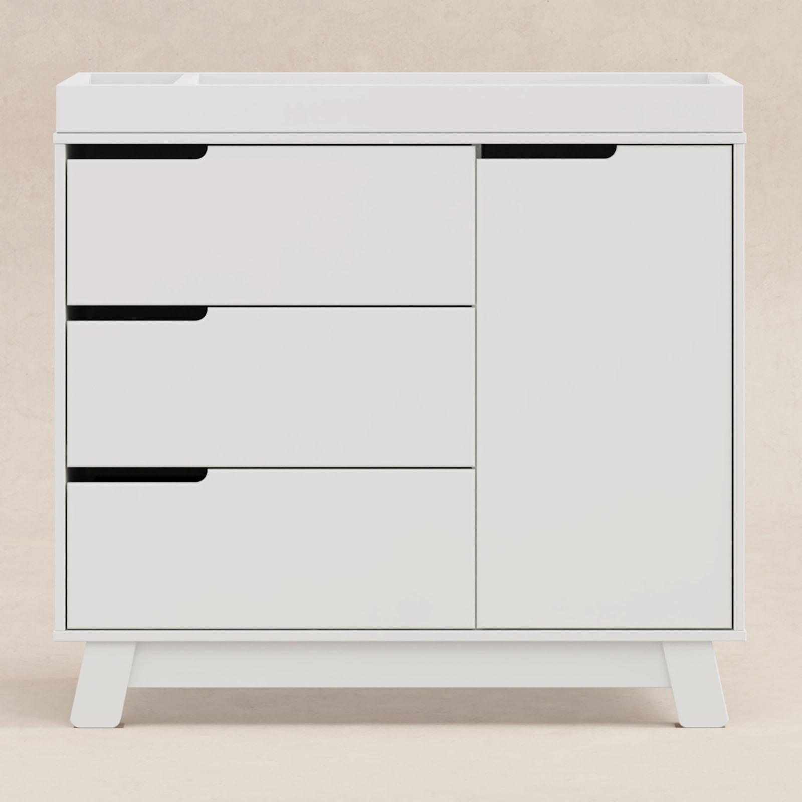 The Hudson 3-drawer Changer Dresser is a modern space-saving convenience! Combining an included changing table, 3-drawer dresser, and storage cabinet all in one versatile package. Truly built for baby, the storage cabinet includes an adjustable shelf which is perfect for keeping diapers and wipes handy. Additional details include smooth-glide drawers, hidden hardware, and an included anti-tip kit. Complement the best-selling Hudson 3-in-1 Convertible Crib for an essential modern nursery.