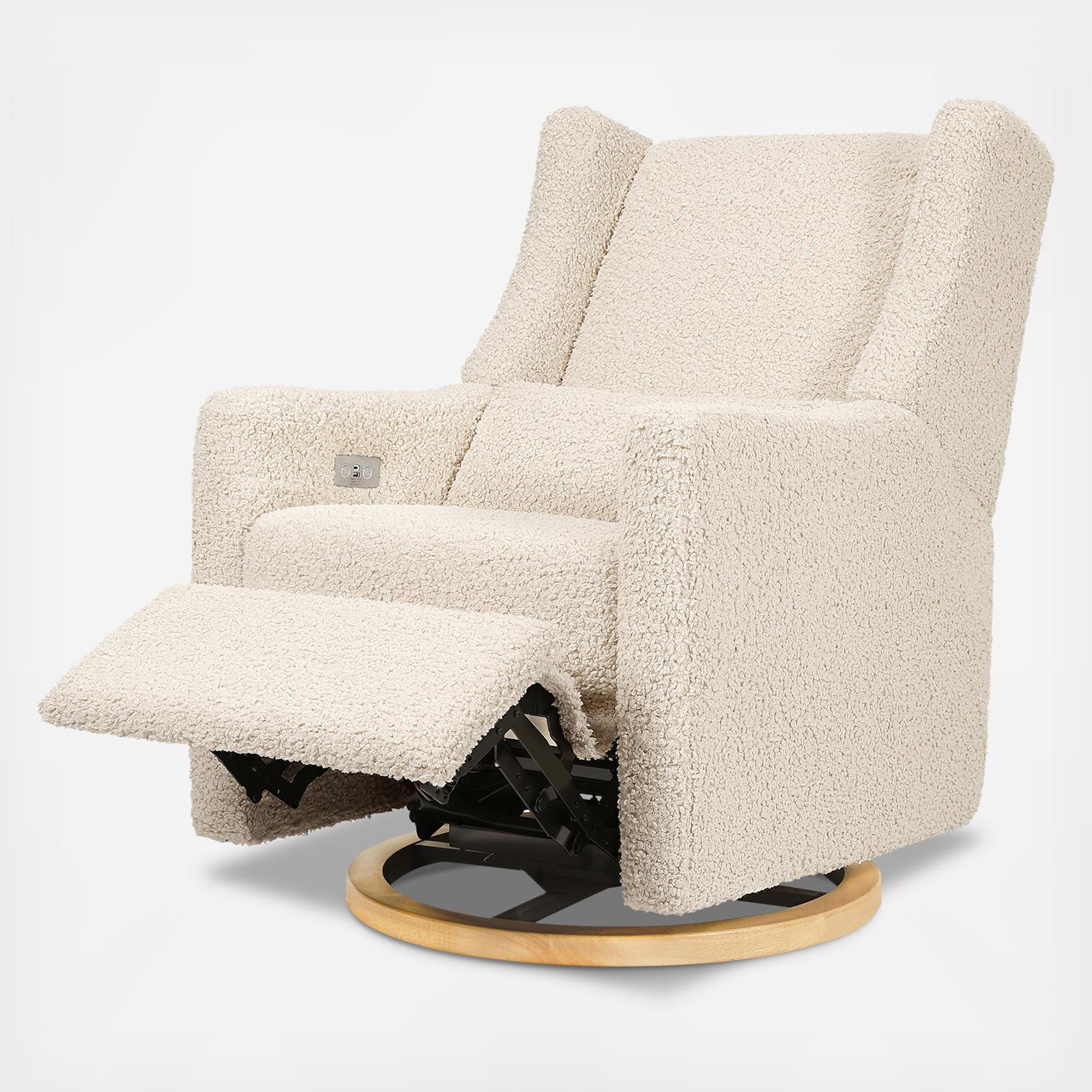 The Kiwi Glider Recliner takes the phrase “rest and recharge” to a whole new level with its built-in USB port, smooth swivel motion, and effortless back and forth gliding motion. Lean back and kick up your feet at the touch of a button with this recliner’s quiet electronic control button. It's a stylish choice with a modern wingback design but also a more sustainable choice for your home. Upholstered by hand in our eco-performance fabric, that is stain resistant, water repellent, and made with at least 30% recycled yarn.