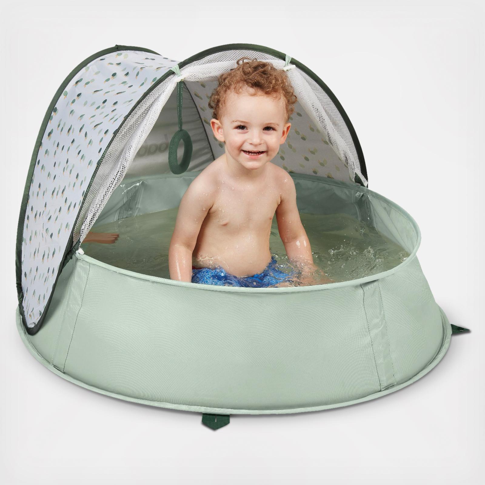 The dome material has an anti-UV rating of 50+ keeping your child's skin protected from 99% of harmful UV-A and UV-B rays. Its sturdy fabric and mosquito net also helps to block wind and sand when used as a beach tent, perfect for the outdoors. A soft and comfy removable floor mat ensures comfort during play and lounge time. Your little one will stay active with the three fun infant toys included. Thanks to its durable waterproof bottom fabric, simply remove the floor mat to convert the Aquani into a paddling pool that can hold up to 20 gallons of water.