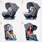 The Cover Me 4-in-1 Convertible Car Seat is unique in that it addresses the number one complaint by experienced mothers (as documented and validated with qualtrics research): Sun in the child’s eyes. The Cover Me is able to do this with its innovative and patent-pending integrated canopy that offers height adjustability, ratcheting coverage, and side sun protection. The base has a zero recline radius that adjusts to three rear facing positions, two forward facing positions, allows front seat passengers to have extra legroom and is easy to access. An integrated recline flip foot is also available to offer dual adjustment and gives the right angle with ease. the Baby Trend Cover Me™ 4-in-1 Convertible Car Seat is allows it to fit three children across in most vehicles. Quality Exceeds U.S. Safety Requirement: All Baby Trend convertible car seats, infant car seats, strollers and other gear collections are designed and engineered to meet and exceed high quality, ASTM standards.