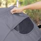 Super large cargo space with built-in seating for two and includes two 3-point safety harness belt. Adjustable dual canopies offers both children protection from the elements. Heavy duty frame offers durability and stability for your growing family.