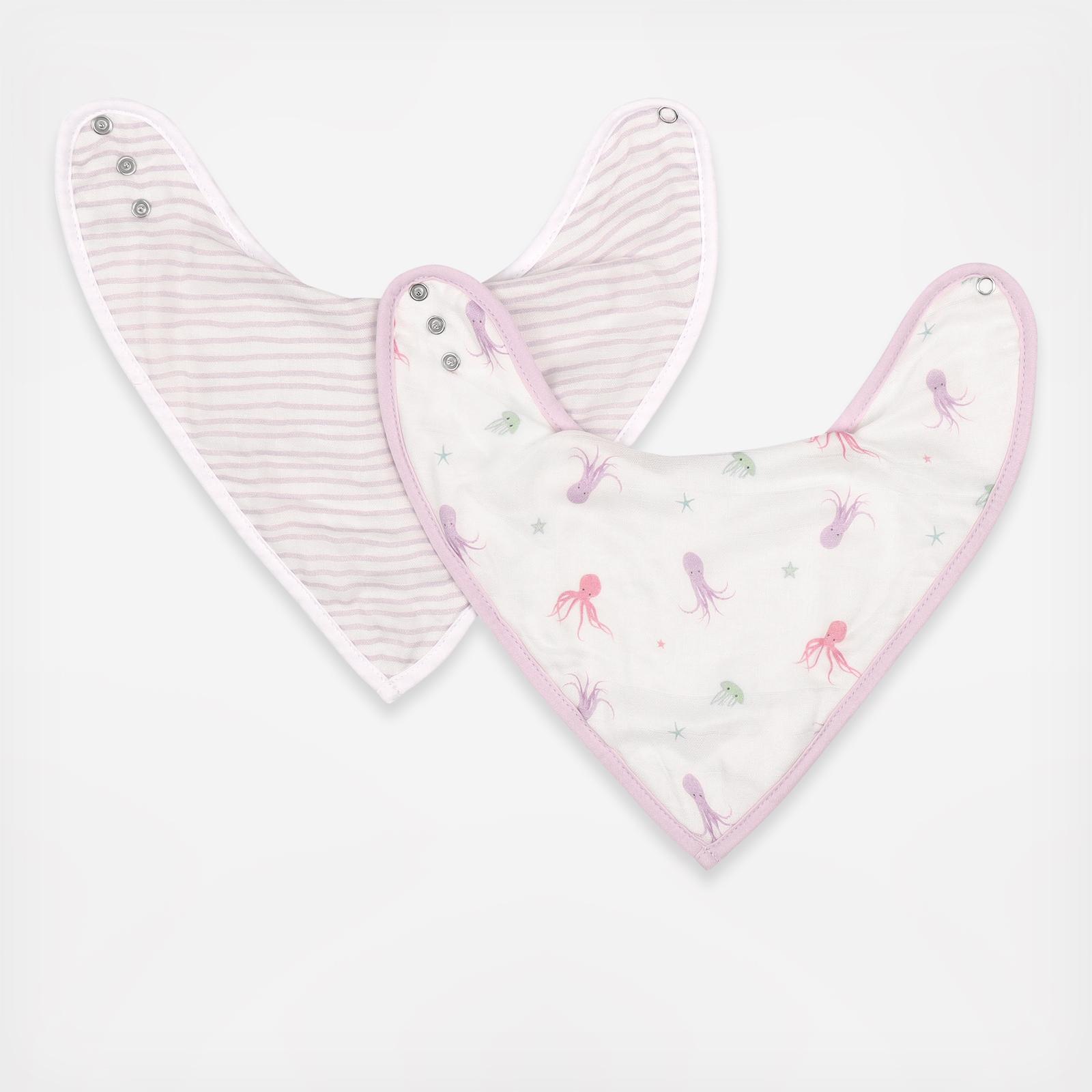 Our versatile, pillowy soft baby bibs are perfect companions for eating, teething, or even drooling. The two-sided blend of viscose from bamboo with cotton muslin on front and absorbent, plush terry backing is tough enough to hold up to any spills, sustainable enough to set your mind at ease and so comfortable your child will forget they’re wearing it.