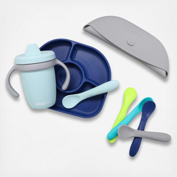For the happiness (and piece of mind) of every parent out there, we have brought together our mealtime essentials in a single box. This colorful and durable silicone set includes our spill-proof sippy Kup, our bib with its deep food Poket as well as our Yumi suction plate and its flexible spoon. The Set is the perfect mealtime set for those looking to give a pretty and practical gift... or those who decide to keep it for themselves!
