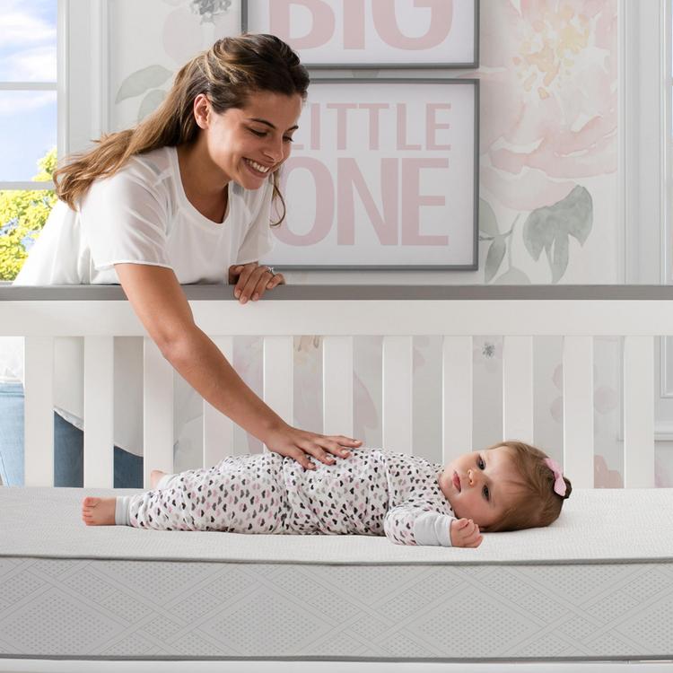 Create an unparalleled sleep experience for your little one with the Beautyrest Black Beginnings Diamond 2 Stage Crib and Toddler Mattress. At the core of this baby mattress 231 Beautyrest Pocketed Coil springs provide firm and even support. These individually wrapped coils provide greater durability than traditional coils while delivering pressure relief for your growing baby. Built to keep up with your child’s changing sleep needs, this mattress is designed with two distinct sides, the infant side features a firm, soy enhanced foam layer for comfort and support while the toddler side has a layer of Micro Diamond™ Memory Foam which helps move heat away from the body for a cool, comfortable sleep. Packed with luxurious features, the Beautyrest Black Beginnings Diamond 2 Stage Crib and Toddler Mattress allows you to welcome baby home with a mattress that comforts them each and every night. For well over a century, Beautyrest has been leading the industry with groundbreaking mattress technologies, so parents can trust them to help little ones sleep and feel better. All Beautyrest crib and toddler mattresses are GREENGUARD Gold Certified and meet the strictest standards offered by the GREENGUARD Environmental Institute, which recognizes products with low chemical emissions, contributing to improved indoor air quality.