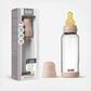 Care Instructions: Sterilize all bottle components in boiling water for 5 minutes. Inspect nipples regularly and replace them as needed (every 1-2 months for latex, 2-3 months for silicone), or sooner if damaged. Sterilization before every use is recommended. Never exceed the bottle’s maximum heat resistance of 100°C and never seal or cover the bottle during sterilization. All bottle components, except for the funnel and nipple, are top-rack dishwasher safe.