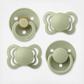 When it comes to pacifier's nipples no size or shape is right or wrong because all babies are different. Babies have different preferences, different sucking techniques, and different mouth anatomy. Therefore, BIBS offers different pacifiers that meet all these different needs. It's important to try out different shapes and sizes to find the perfect fit for your baby. Therefore, we have the BIBS Try-It Collection.