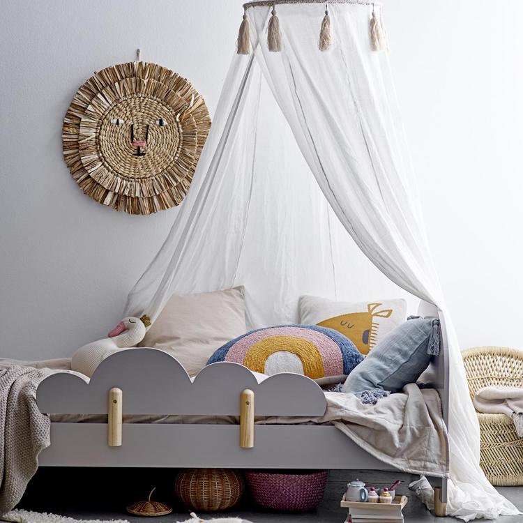 Always a special addition to any room decor, this macrame canopy is a jewel. Hang at the head of a bed for an elegant touch. For the little princess in the home, hang this canopy in the corner of her bedroom and tie the ends back against the wall creating a special corner for playing house or reading.