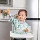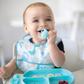 • Starter Bib 2-Pack: Attaches over the back of the shoulder with hook and loop, sized to fit ages 3 to 9 months