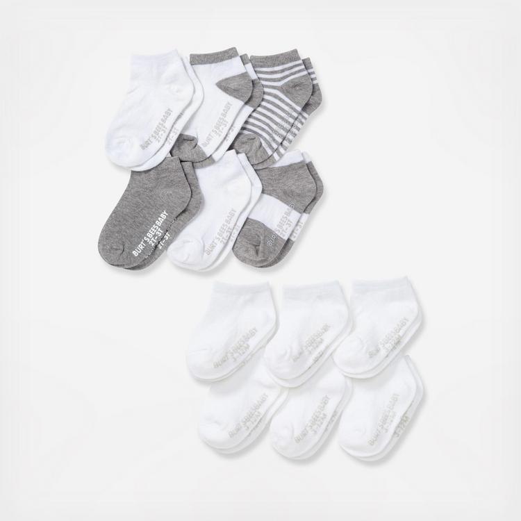 Keep those tiny little feet warm and cozy in these heavenly soft socks made with organic cotton. This 12 pack is a must have for any parent! Uniquely made with eco-friendly grippers, these socks are the basics you need to complete your Burt's Bees Baby look!