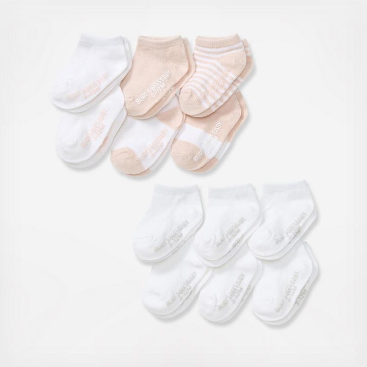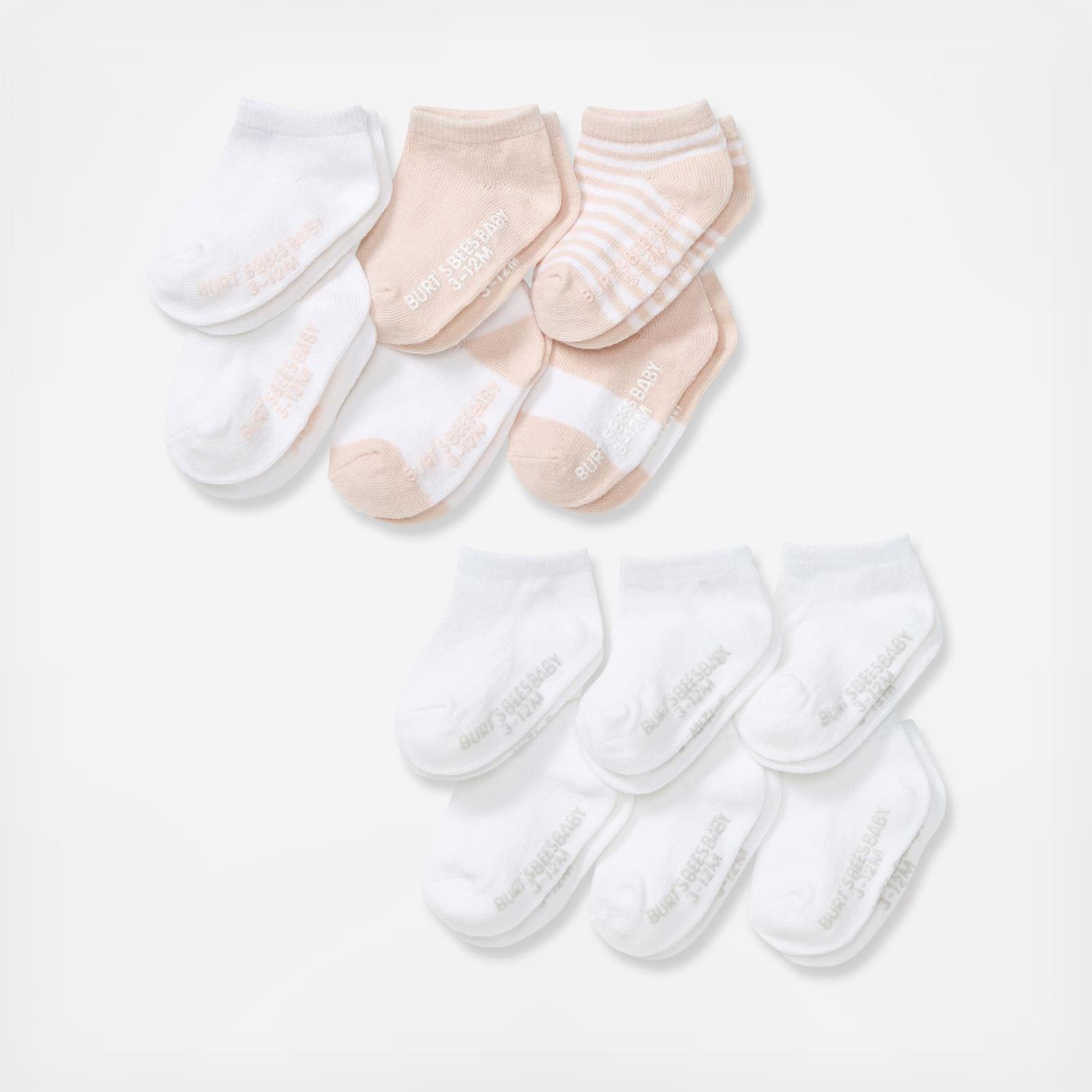 Keep those tiny little feet warm and cozy in these heavenly soft socks made with organic cotton. This 12 pack is a must have for any parent! Uniquely made with eco-friendly grippers, these socks are the basics you need to complete your Burt's Bees Baby look!