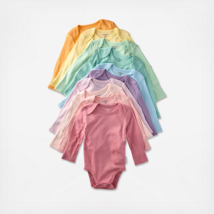 We made these just for you. Our long sleeve bodysuits are crafted from butter-soft, 100% GOTS certified organic cotton, because your sensitive skin deserves nothing less. We designed them in happy hues and bundled them in multipacks that were made to match perfectly with pants, socks, caps, and more. This bodysuit has an expandable neck and nickel-free snaps so changes are quicker for your parents and more comfortable for you. From newborn snuggles to 24-month wiggles, there’s a size for every stage. And don’t worry about messes—we made sure they wash like a dream, stay soft, and keep their color.