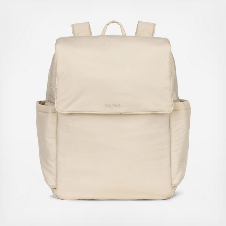 Our Meet CALPAK's Diaper Backpack with Laptop Sleeve helps you stay seamlessly connected from your desk to departures. We know you don’t always have time to pause, which is why we designed a laptop-friendly diaper bag backpack - perfect for a 14 inch laptop - with everything you need to multi-task in style. More than just a typical diaper backpack, it includes a luggage trolley sleeve with a hidden pocket, adjustable shoulder straps, and multiple bottle pockets to keep you and your baby satisfied along the way. Crafted from durable, recycled, water-resistant materials, this baby bag backpack with a magnetic closure is the perfect way to show off your parenting style.