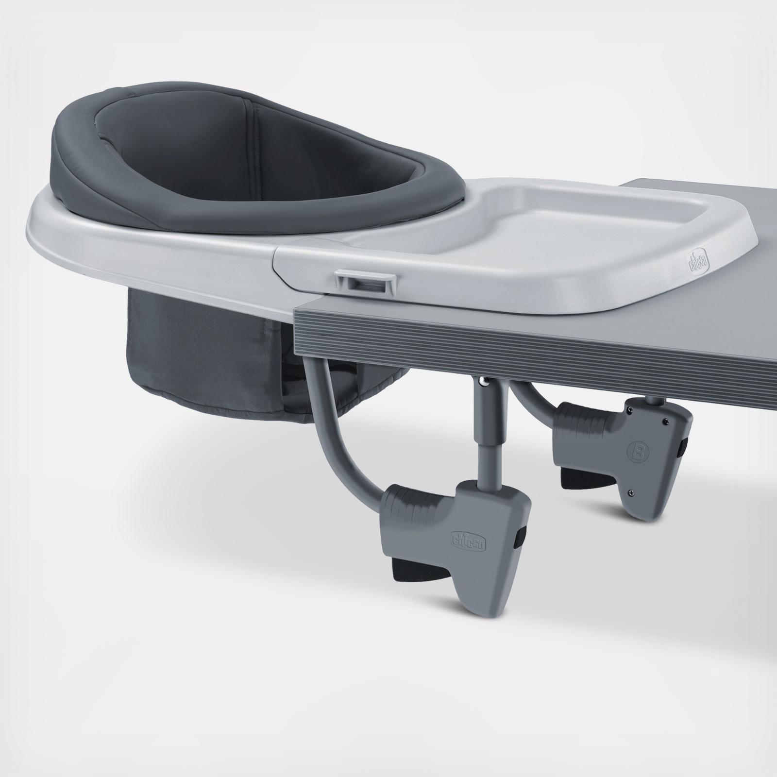 This hook-on chair accommodates the needs of your baby any time of day. 360-Degree rotation clicks into forward, side and rear facing positions. FastLock clamp attaches to a table surface in seconds. Rubberized feet on clamp enhance grip and protect table from scratches and scuffs.