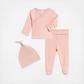 A perfect take-me-home outfit featuring must-haves for your babe's closet. The Wrap top features reinforced snap closure and turn back sleeve opening mitts. The Pants are extra cozy with its fold-over waist and soft texture keeping your baby's little legs warm. The organic cotton knotted baby hat combines comfort, style, and practicality in one adorable essential. This newborn necessity features sustainably sourced organic cotton that’s ethically produced for your peace of mind. The classic knotted design provides the perfect blend of function and style that modern parents demand.