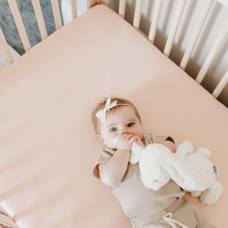Our crib sheets are made from premium knit fabric which feels very soft to the touch and holds up well over many uses. Both lightweight and breathable, the knit fabric promotes a cool and comfortable night’s sleep. Wash before use to ensure the best fit and softness for baby. Perfectly designed to fit all standard baby mattresses. High quality elastic stitching around the entire crib sheet ensures a tight fit that looks clean and modern. The perfect fit keeps baby safe and comfortable.