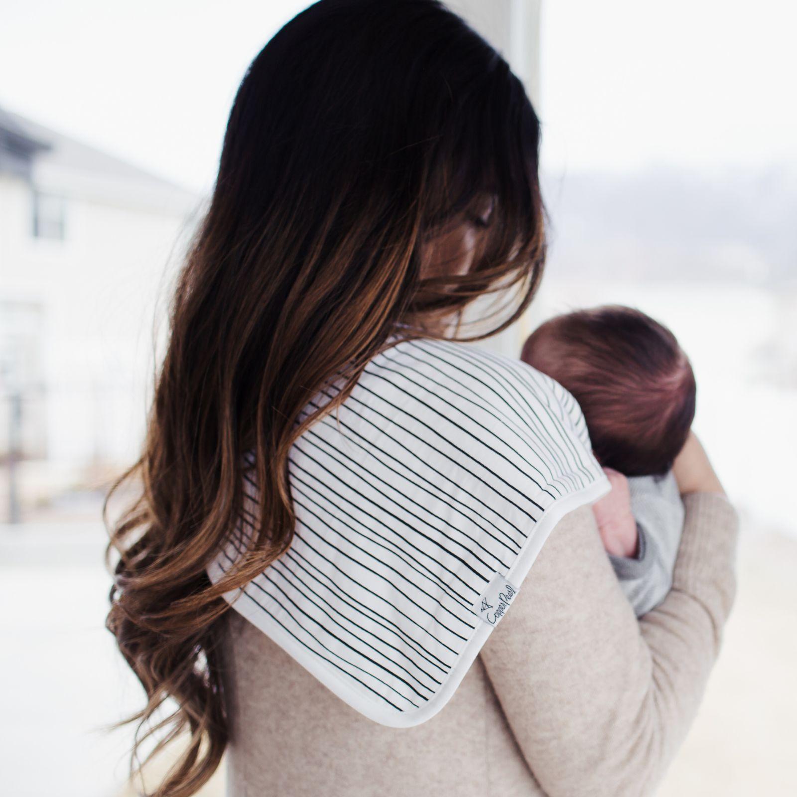 Our burp cloths are designed with baby’s comfort in mind. That’s why we created them with ultra-soft cotton layers on the front (patterned) and back (plain white). You can feel confident that baby will feel cozy against your shoulder while burping.