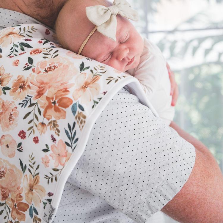 Our burp cloths are designed with baby’s comfort in mind. That’s why we created them with ultra-soft cotton layers on the front (patterned) and back (plain white). You can feel confident that baby will feel cozy against your shoulder while burping.