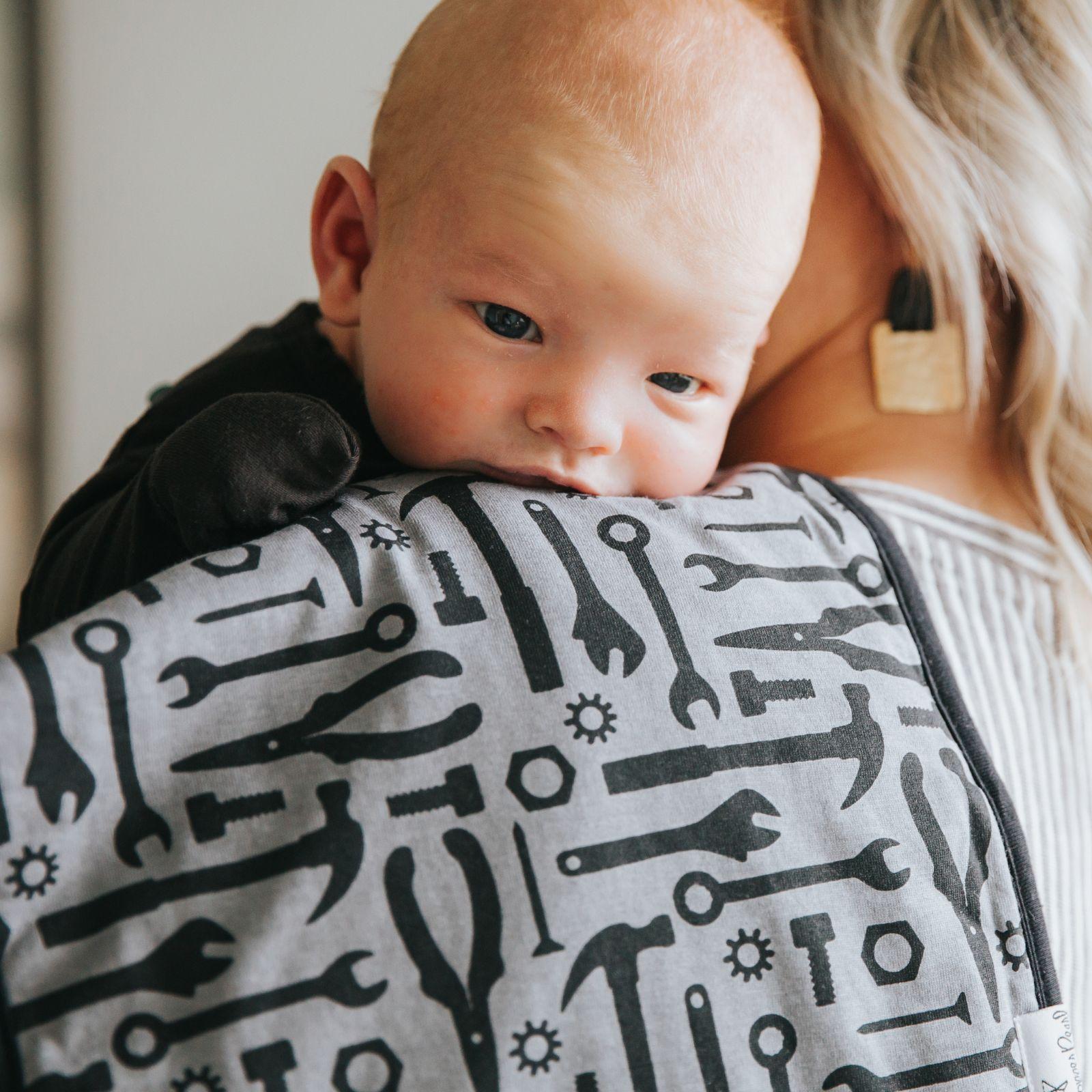 Our burp cloths are designed with baby’s comfort in mind. That’s why we created them with ultra-soft cotton layers on the front (patterned) and back (plain white). You can feel confident that baby will feel cozy against your shoulder while burping.