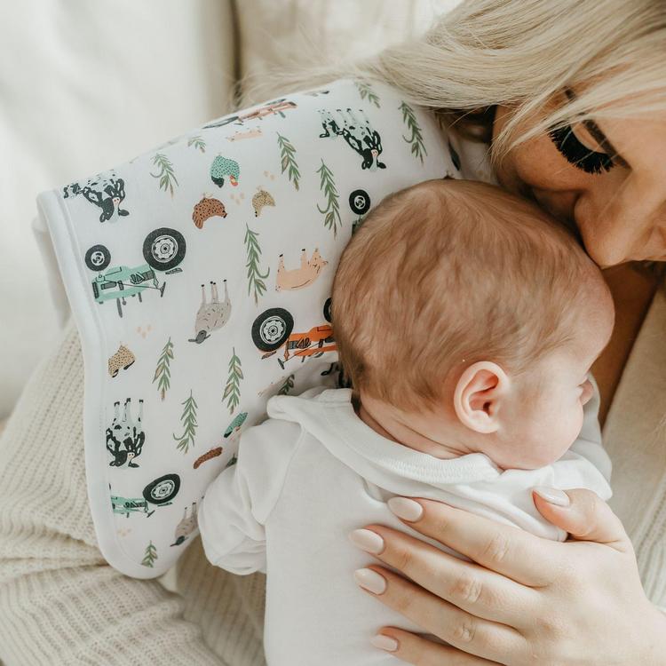 Our burp cloths are designed with baby’s comfort in mind. That’s why we created them with ultra-soft cotton layers on the front (patterned) and back (plain white). You can feel confident that baby will feel cozy against your shoulder while burping.