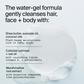 Ingredient list: Water (Aqua), Decyl Glucoside, Glycerin, Sodium Lauroyl Lactylate, Coco-Glucoside, Glycolipids, Sodium Benzoate, Panthenol, Guar Hyroxypropyltrimonium Chloride, Citric Acid, Trisodium Ethylenediamine Disuccinate, Althaea Officinalis (Marshmallow) Root Extract