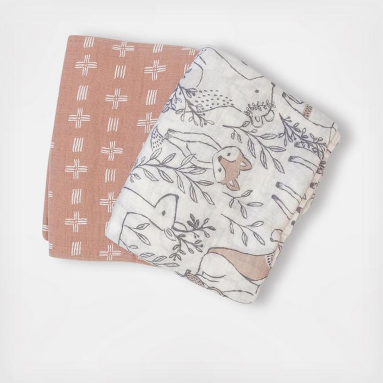 These pre-washed cotton muslin swaddle blankets are the perfect swaddle blanket set. This two piece set from the Ezra collection utilizes neutral colors, yet eye-catching prints. The blankets are also soft and will help your baby feel extra secure and cozy. You can also get more pieces to match from the Ezra collection such as baby bibs, fitted crib sheets and so much more.