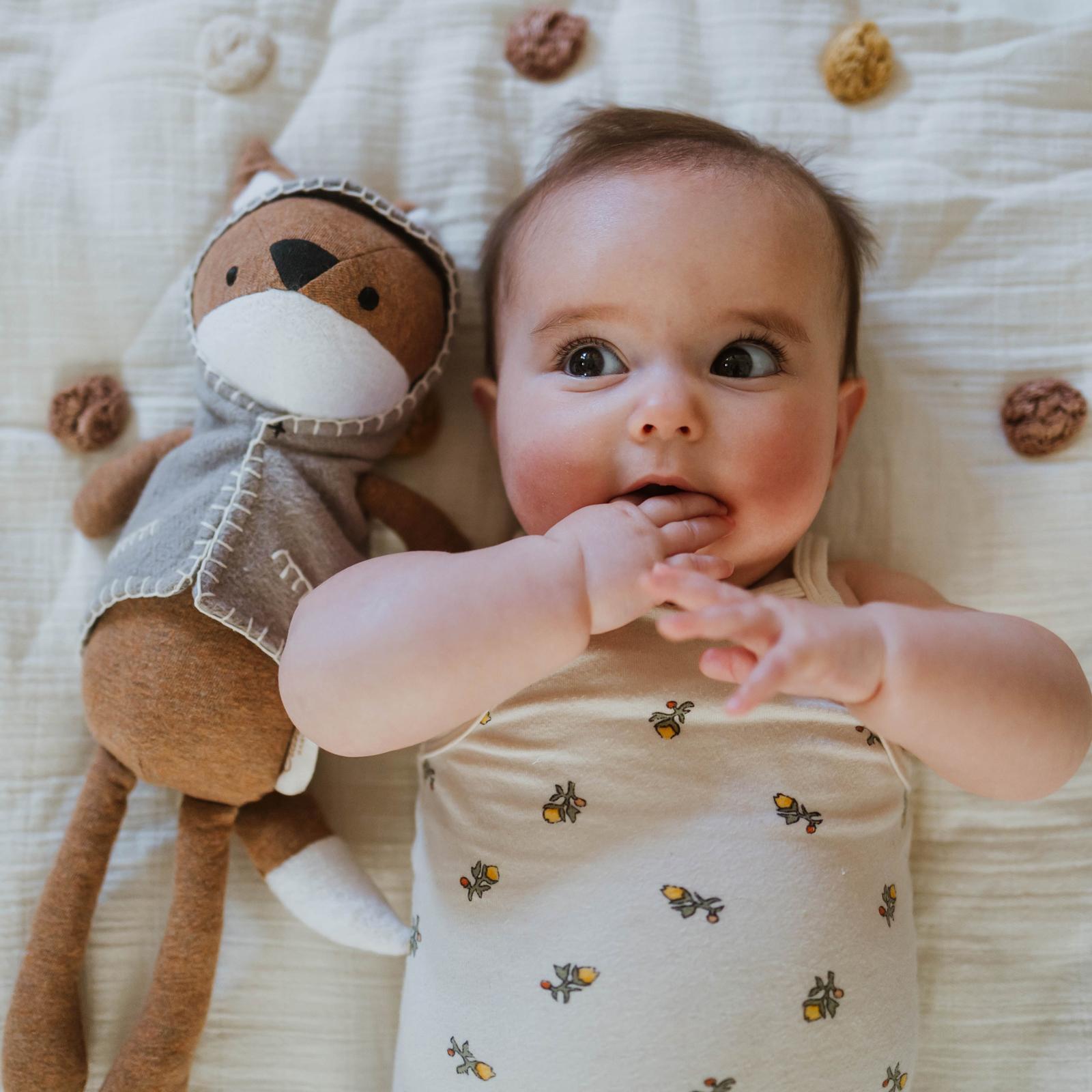 The Frankie Fox Plush Toy features an adorable fox wearing his own tiny hooded vest. The plush will add a pop of color to your baby’s nursery without being overpowering, and it’s great for snuggling. Frankie fox also features handmade details, and can be paired with several of these baby bedding sets for a curated look.