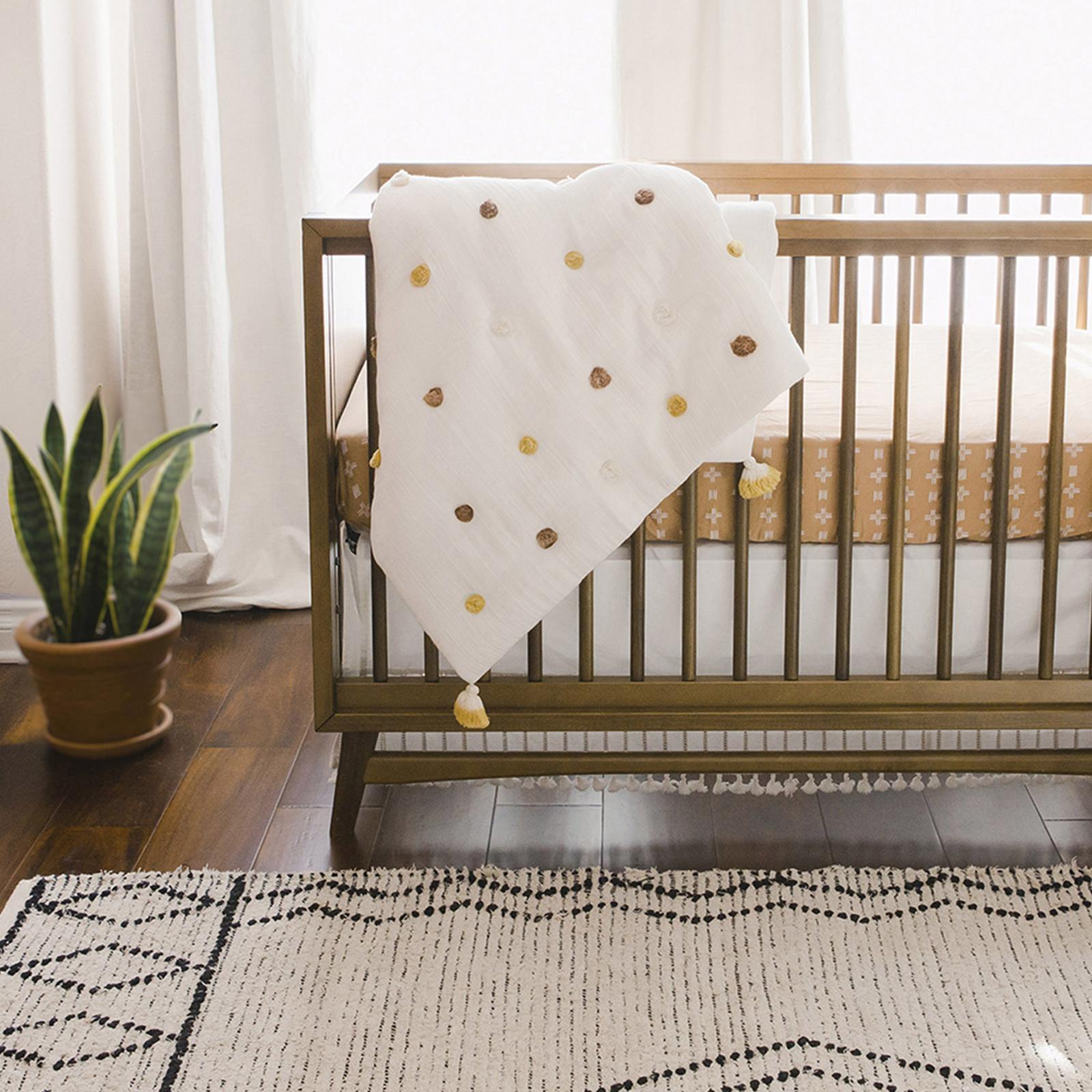 If you’re looking for a truly classy piece to add to your baby’s nursery, look no further than the Kendi Pom Pom Quilted Baby Blanket. It comes in a beautiful light shade with handmade pom poms as accenting. The blanket would look lovely draped over your rocking chair, or on the floor for a more comfy tummy time playmat. Pair it with one of these baby bedding sets for a stunning, curated look.