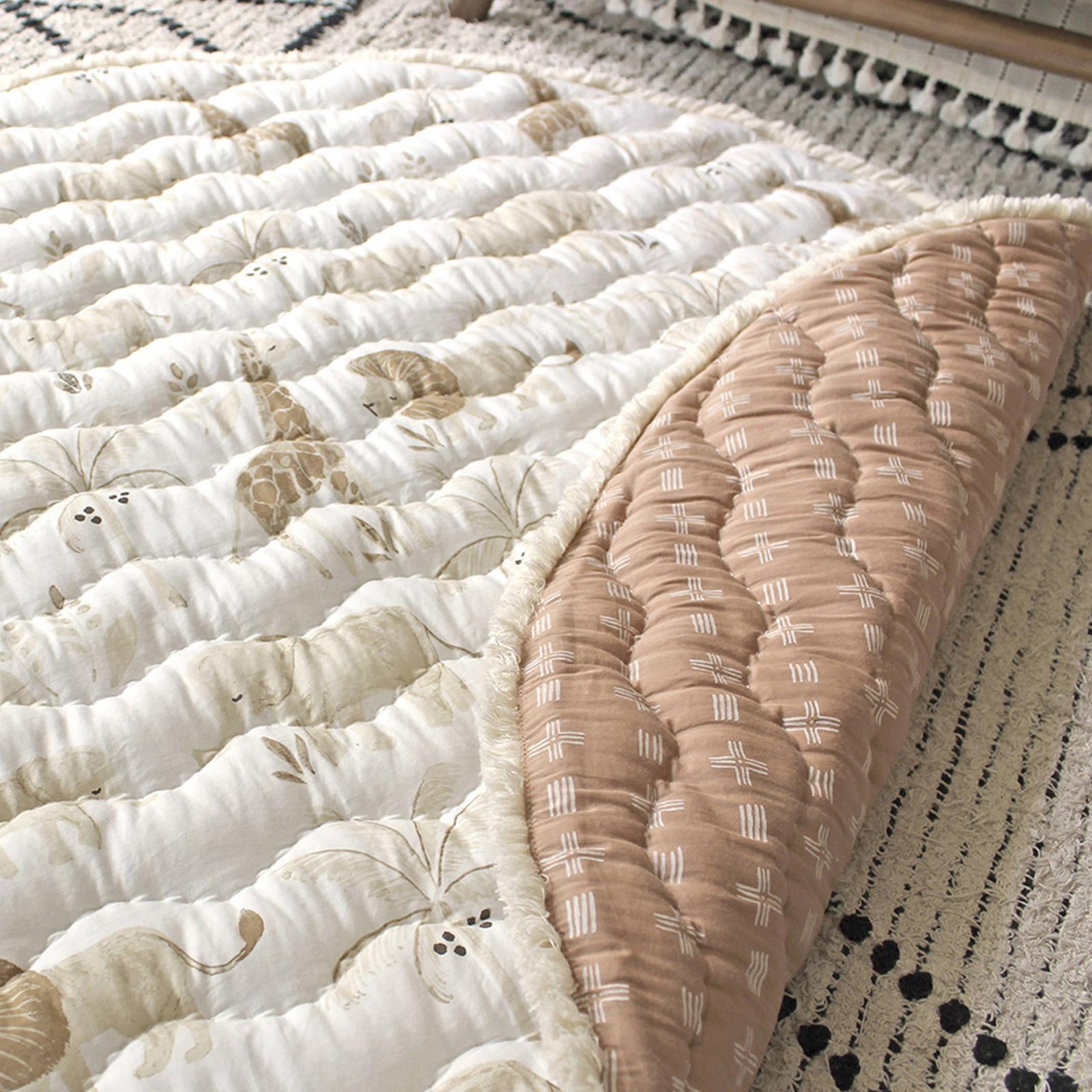 Play, tummy time, bonding, and more. The Kendi Quilted Playmat is the perfect place for your baby to learn and grow comfortably. Thoughtfully and ethically sourced, this detailed yet neutral playmat is not only stunning, it’s also totally machine washable. It matches many of these baby bedding sets and nursery wall art. Display them together for a nursery with a curated look and feel.