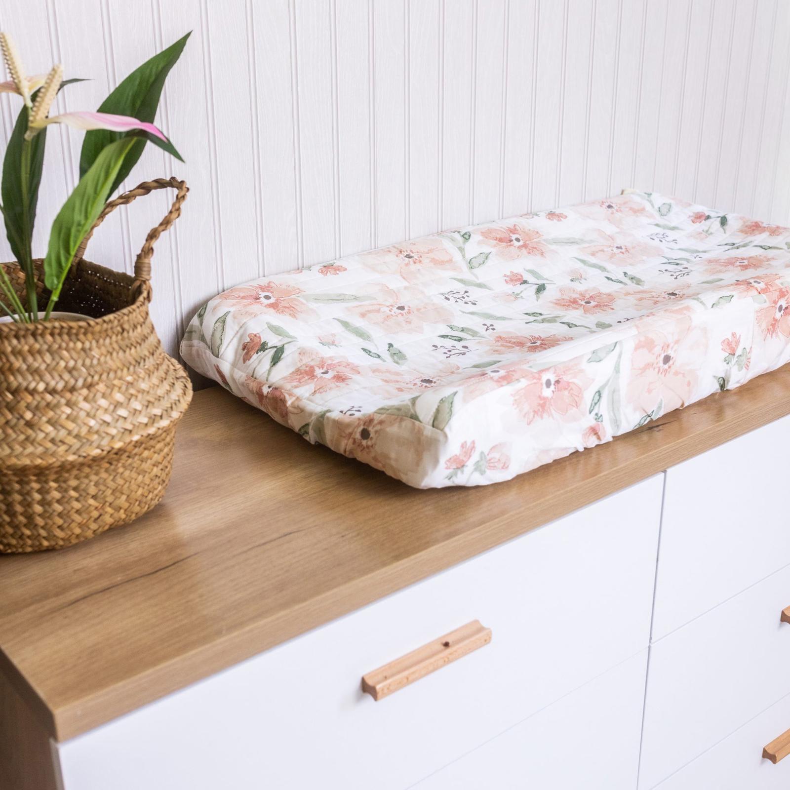 Introducing the Parker Floral Change Pad Cover, a delightful addition to your nursery essentials. This cover features a captivating floral design inspired by nature's delicate beauty. Crafted for comfort and style with natural cotton, it ensures a cozy changing experience for your baby while adding an elegant touch to their nursery.