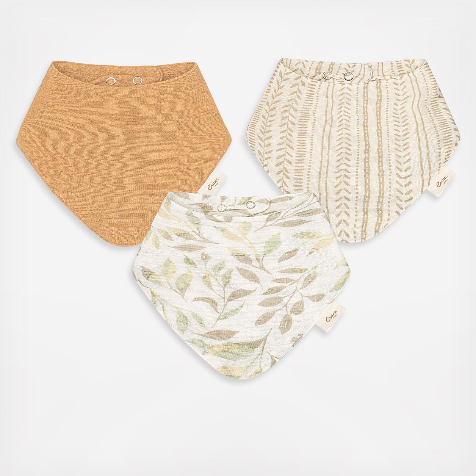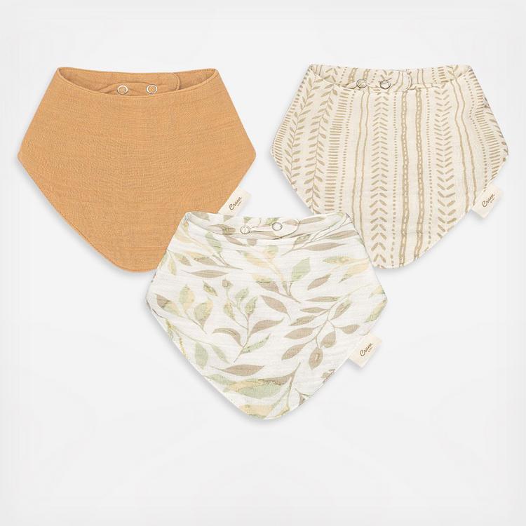 A delightful trio of baby bibs that exude natural charm. With their soft textures and distinct designs, the Willow Bib Set is crafted from breathable and gentle-to-the-skin fabric. The adjustable snaps ensure a comfortable fit, allowing the bibs to grow along with your baby. Plus, their bandana-style adds a trendy touch to any outfit. Coordinate them effortlessly with our Willow burp cloths, swaddles and baby nursery bedding sets for a perfectly curated look. Whether for your little one or as a thoughtful gift, the Willow Muslin Bib Set is a beautiful addition to any baby’s outfit.