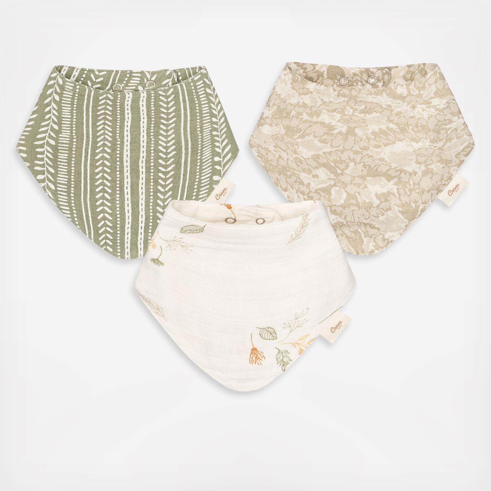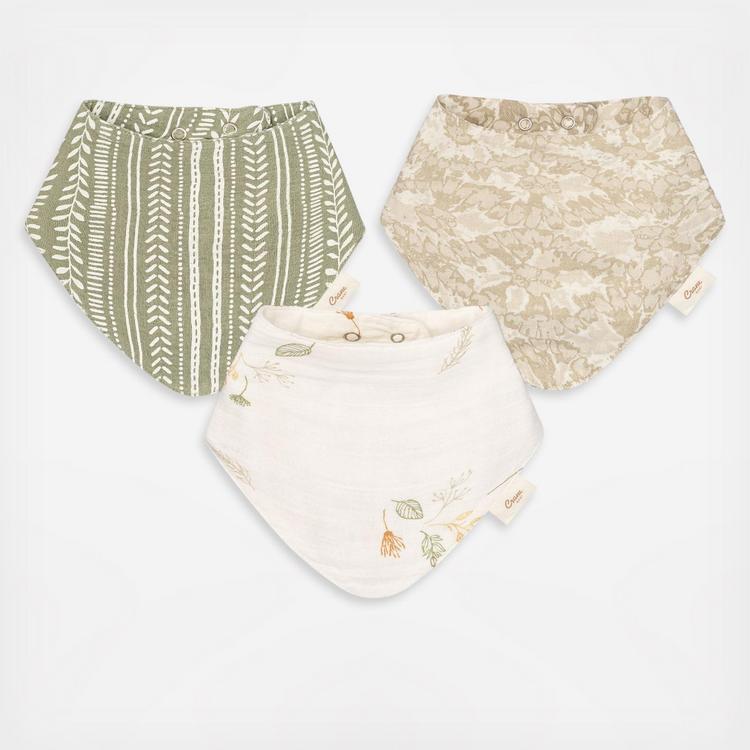 A delightful trio of baby bibs that exude natural charm. With their soft textures and distinct designs, the Willow Bib Set is crafted from breathable and gentle-to-the-skin fabric. The adjustable snaps ensure a comfortable fit, allowing the bibs to grow along with your baby. Plus, their bandana-style adds a trendy touch to any outfit. Coordinate them effortlessly with our Willow burp cloths, swaddles and baby nursery bedding sets for a perfectly curated look. Whether for your little one or as a thoughtful gift, the Willow Muslin Bib Set is a beautiful addition to any baby’s outfit.