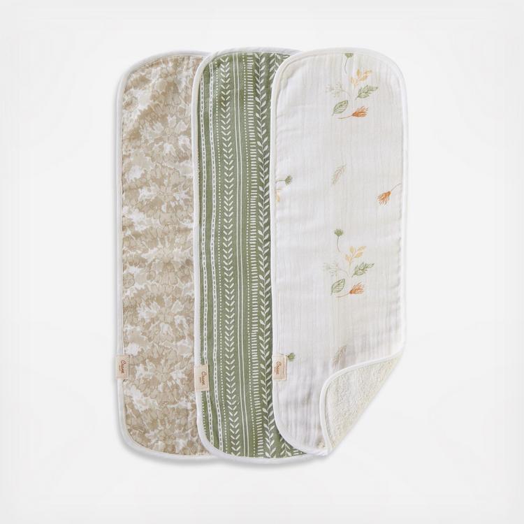 Crafted with a cotton terry cloth back and a soft cotton muslin front, these burp cloths effortlessly combine lightweight comfort with impressive absorbency. Designed with an earth-toned palette, the Willow three-piece Burp Cloths make a great addition to any nursery or diaper bag. Elevate your baby care routine with the Willow Burp Cloths and experience the perfect balance of practicality and beauty.