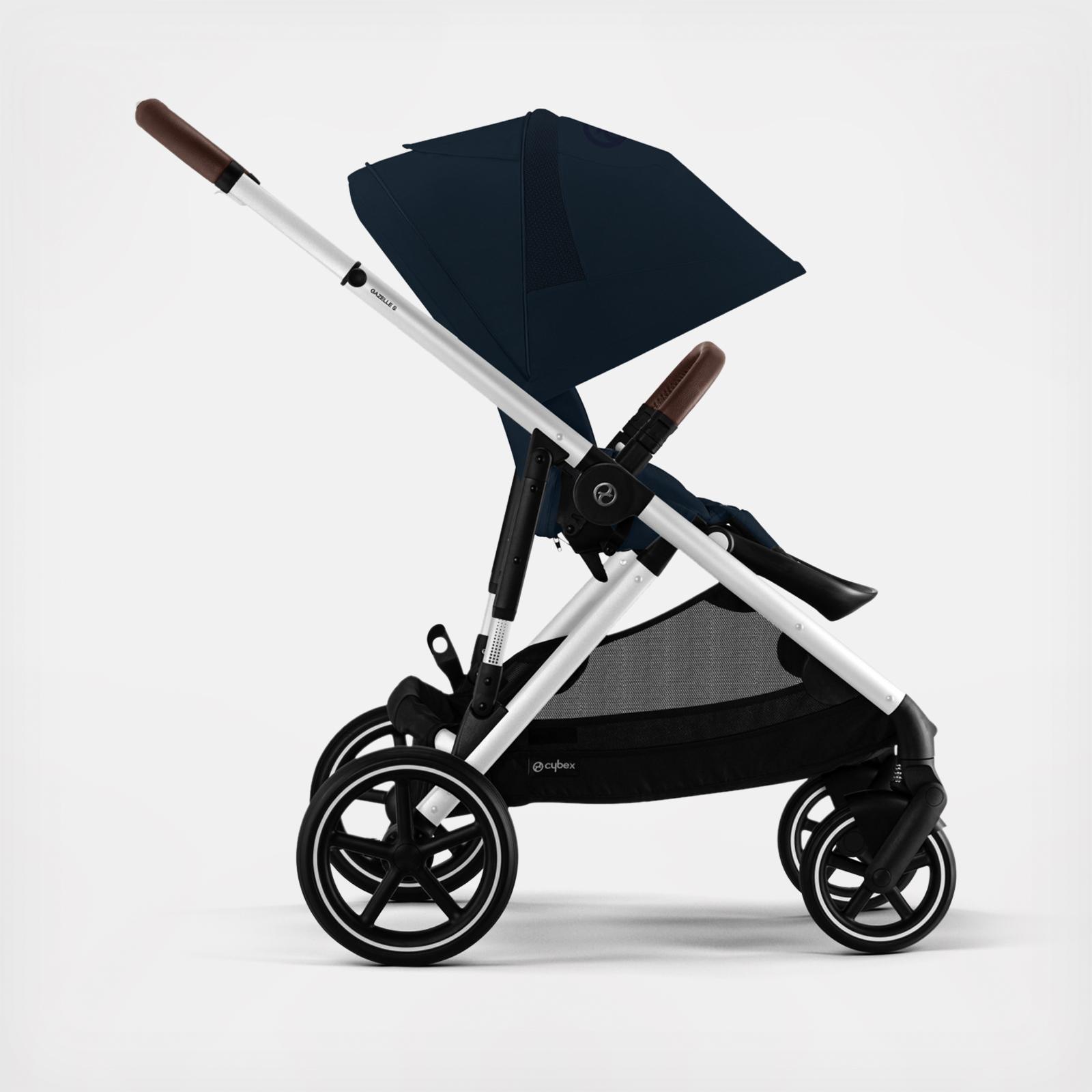 The CYBEX Gazelle S is the ideal first stroller that includes a removable shopping basket with an impressive additional carrying capacity of 25 lbs. Adapting to the changing needs of your family, the Gazelle S can easily convert from a single to a double stroller without additional adapters. Designed to support 20+ different configurations, the Gazelle S includes a near-flat reclining reversible seat and is compatible with our Gazelle S Cot and all CYBEX Infant car seats for use from birth. Add the optional kid board (sold separately) to accommodate 3 children. Endless opportunities for your growing family!
