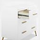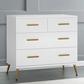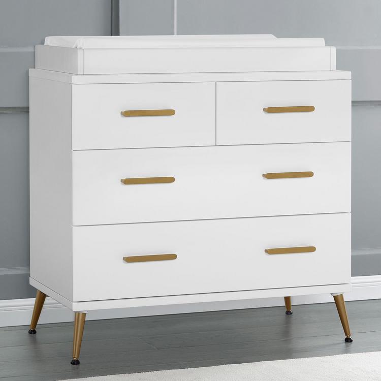 The Sloane 4 Drawer Dresser with Changing Top and Interlocking Drawers by Delta Children is the ultimate piece of kids’ furniture. Sleek and modern, it boasts a mixed material design with bronze splayed feet and drawer handles that make it elevated enough for your master bedroom. But this dresser is more than just fashionable—it's super functional, too. It features four spacious drawers for ample clothing storage and includes a removable changing top that creates the perfect space for diaper changing. Remove the changing top to create a more grown-up space later on. For your child’s safety, this dresser is outfitted with an interlocking drawer system that limits the number of drawers that can be opened at one time. Plus, it’s GREENGUARD Gold Certified, which means it’s built to contribute to cleaner air for a healthy home. Pair this dresser with other pieces in the Delta Children Sloane Collection for a coordinated look. This Delta Children dresser is tested to meet the current requirements of ASTM F2057, the mandatory CPSC safety standard that protects young children from furniture tip-over incidents. For your children’s safety, only purchase dressers that comply with this standard. For additional security, Delta Children strongly recommends that all dressers in your home be anchored; all Delta dressers include a wall anchor. To learn how to properly secure your dresser, please see the product assembly instructions or visit our website.