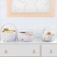 This babyGap by Delta Children 3-Pack of Nested Fabric Storage Bins with Handles is the perfect solution for organizing any nursery or child’s bedroom. Adorned with an adorable Brannan Bear, polka dot motif and stripe patterns, these three caddies are uniquely babyGap. Ideal storage for diapers, clothing, toys and more, these caddies feature sturdy faux leather handles to ensure easy transport. The three included sizes will cover all your storage needs, the small features a divider and outside pockets which makes it ideal for diapers and changing necessitates, the medium is roomy enough for toys, and the large features a removable divider and spacious interior which makes it perfect for clothes storage. For maximum space-saving, these handy caddies nest inside each other when not in use.