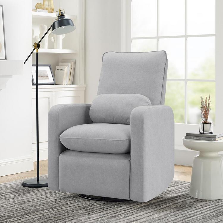 The babyGap Cloud Recliner with LiveSmart Evolve Fabric brings a modern silhouette, clean lines and plenty of cozy comfort to the nursery. The recliner features an easy-to-reach pull tab reclining mechanism that offers two recline positions (footrest up only and footrest up with back reclined), plus it swivels and glides with a smooth motion, so you won't disrupt your little one's sleep while you get comfortable. The included lumbar pillow provides additional support. The perfect combination of performance and suitability, the babyGap Cloud Recliner is upholstered in LiveSmart Evolve fabric that is durable, stain-resistant, and sustainably designed using fabric made from recycled plastic bottles. LiveSmart Evolve will keep the recliner looking and feeling beautiful while helping to divert as many as 30 plastic bottles from waterways and landfills per chair. Create a more sustainable future for your whole family with the babyGap Cloud Recliner.